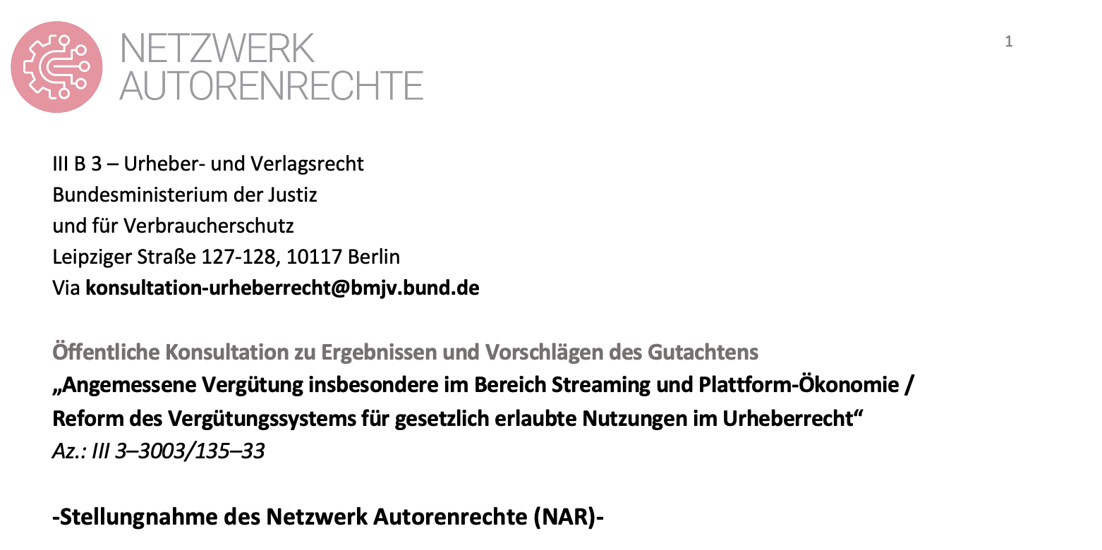 Für das Netzwerk Autorenrechte, verantwortlich für die Evaluation und Stellungnahme: